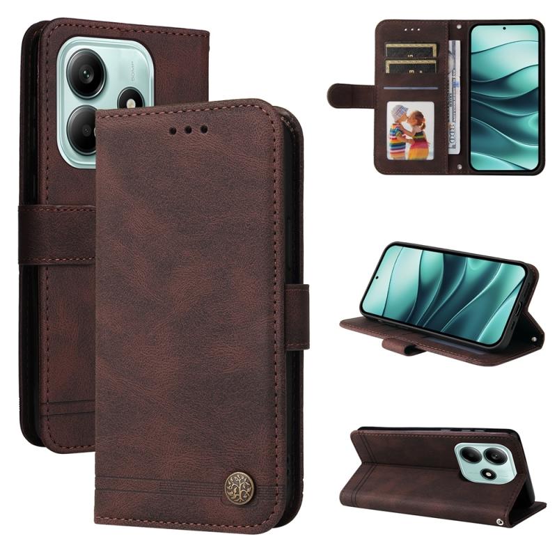 For Redmi Note 14 5G Skin Feel Life Tree Metal Button Leather Phone Case(Brown)