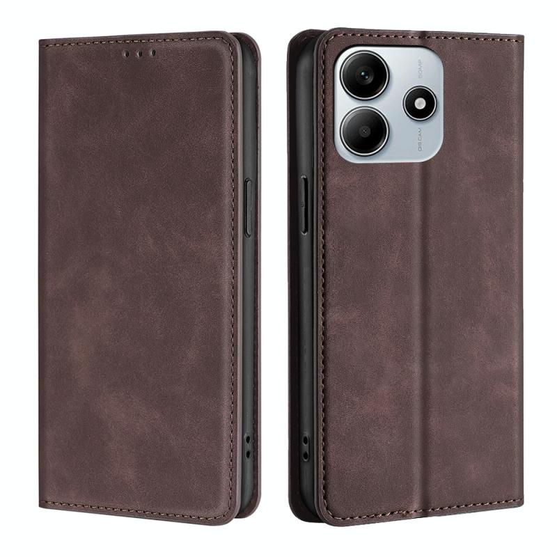 For Redmi Note 14 5G Skin Feel Magnetic Leather Phone Case(Dark Brown)