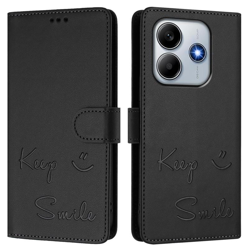 For Redmi Note 14 5G Smile Embossing RFID Leather Phone Case(Black)