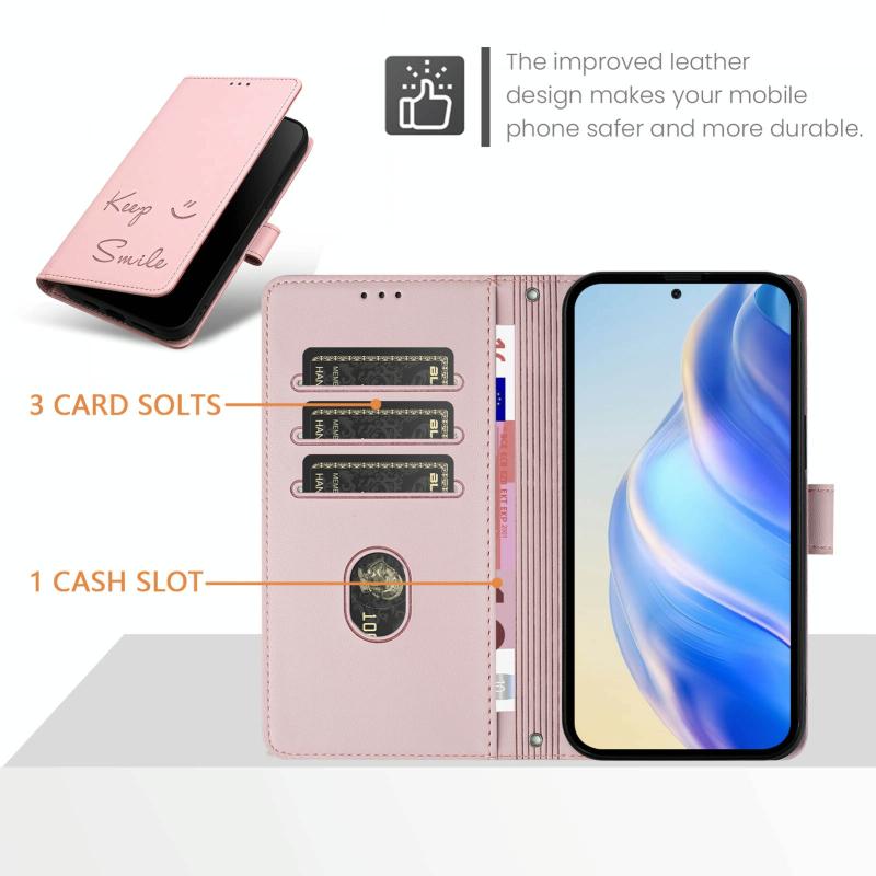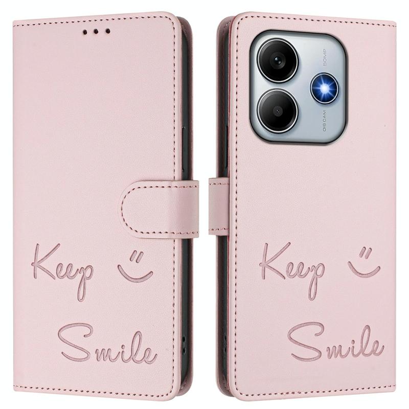 For Redmi Note 14 5G Smile Embossing RFID Leather Phone Case(Pink)