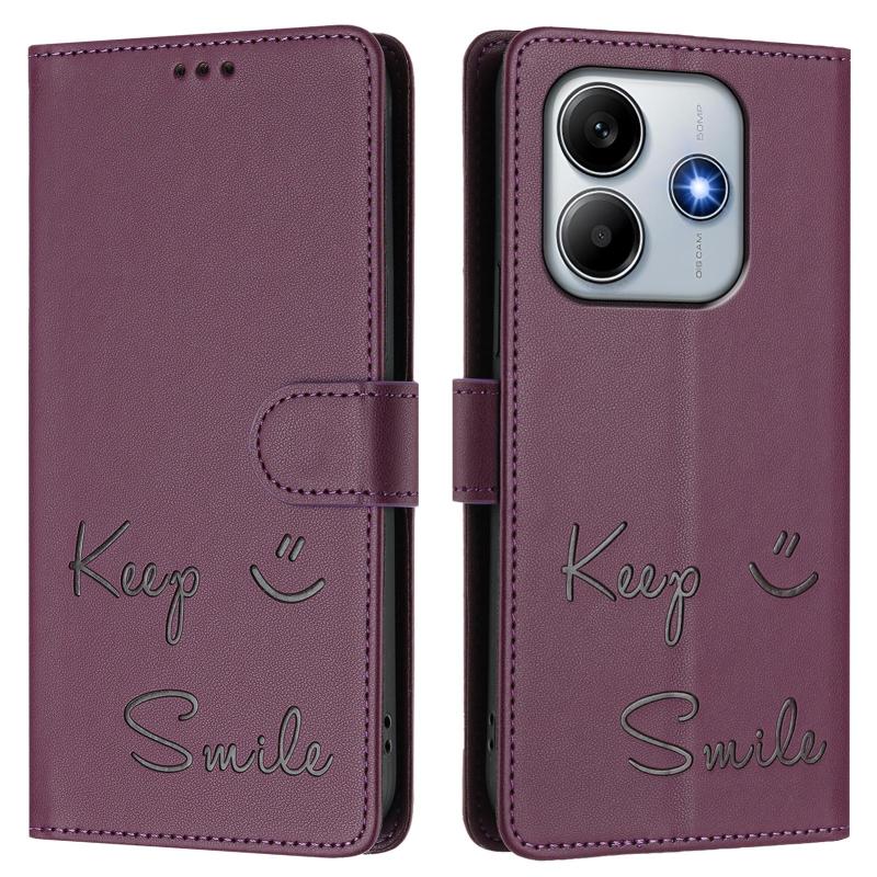 For Redmi Note 14 5G Smile Embossing RFID Leather Phone Case(Violet)
