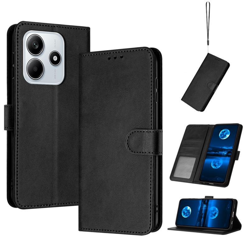 For Redmi Note 14 5G Solid Calf Texture Flip Leather Phone Case(Black)