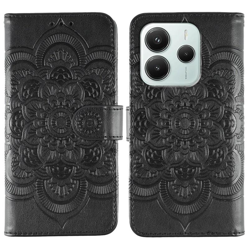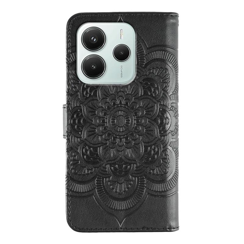 For Redmi Note 14 5G Sun Mandala Embossing Pattern Phone Leather Case(Black)