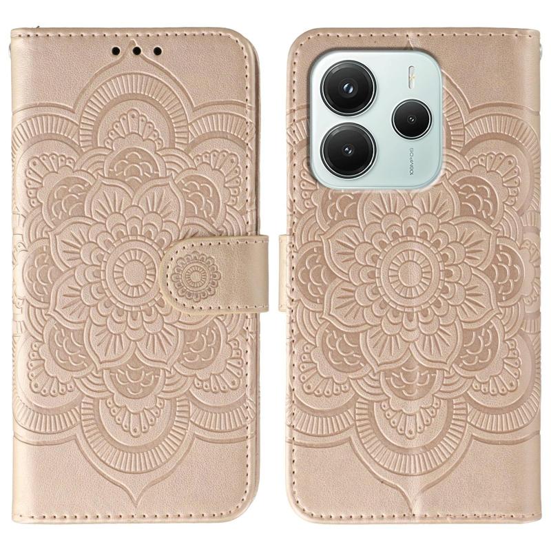 For Redmi Note 14 5G Sun Mandala Embossing Pattern Phone Leather Case(Rose Gold)
