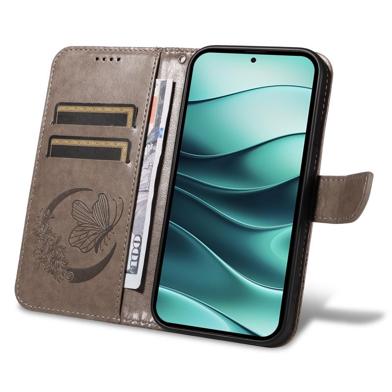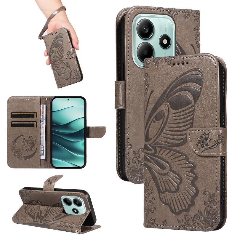 For Redmi Note 14 5G Swallowtail Butterfly Embossed Leather Phone Case(Grey)