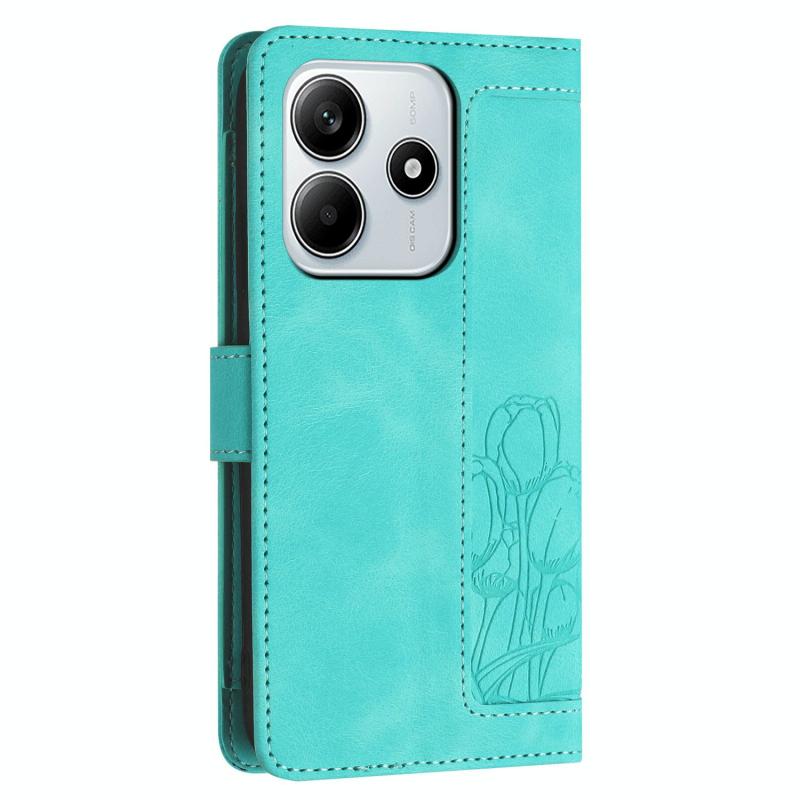 For Redmi Note 14 5G Tulips Embossed Leather Phone Case with Lanyard(Green)
