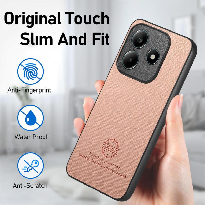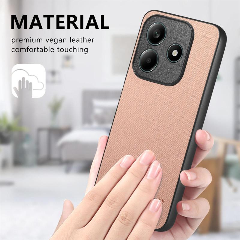 For Redmi Note 14 5G Twill Fabric Leather Skin Back Phone Case(Pink)