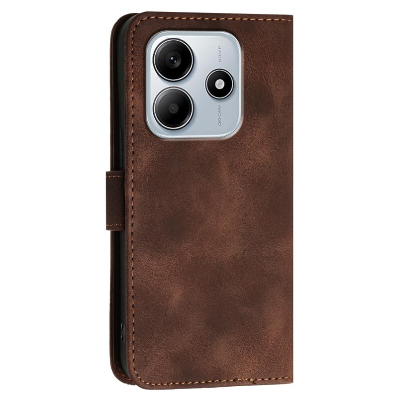 For Redmi Note 14 5G YX0080 Grid Butterfly Embossed Pattern Leather Phone Case with Lanyard(Coffee)