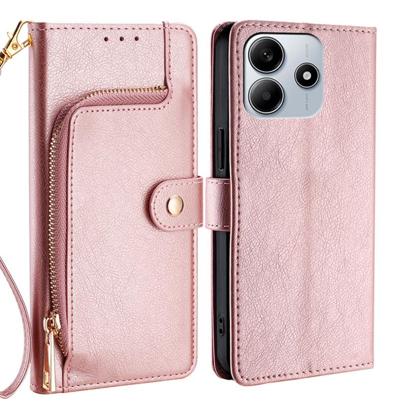 For Redmi Note 14 5G Zipper Bag Leather Phone Case(Rose Gold)