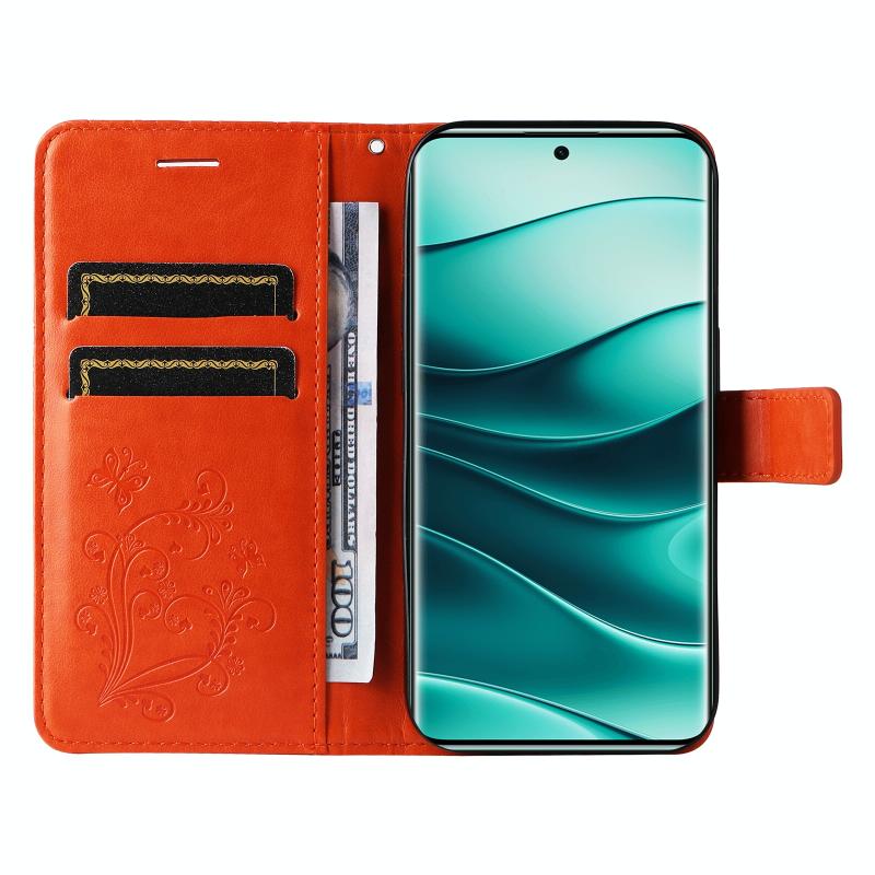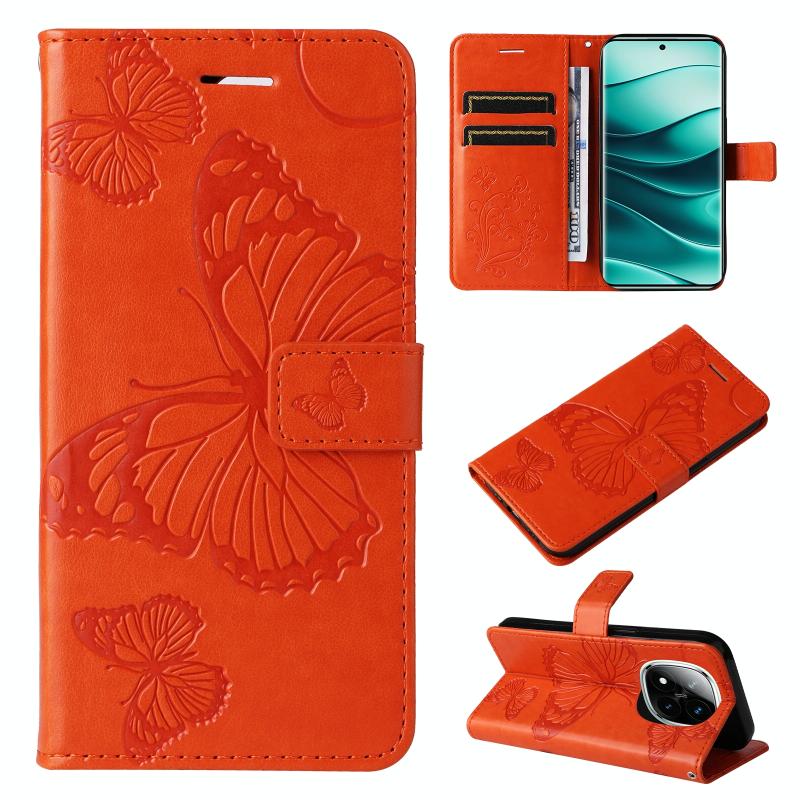 For Redmi Note 14 Pro / 14 Pro+ 5G 3D Butterfly Embossed Pattern Flip Leather Phone Case(Orange)