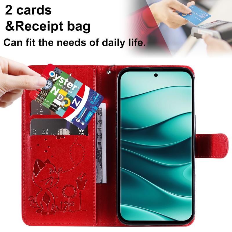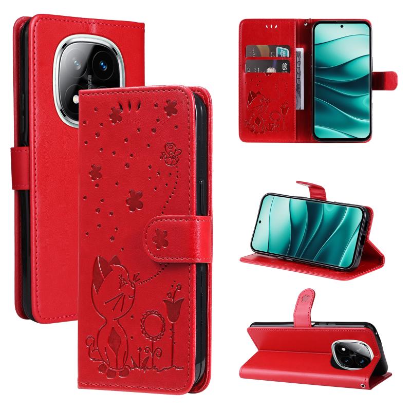 For Redmi Note 14 Pro / 14 Pro+ 5G Cat and Bee Embossed Flip Leather Phone Case(Red)