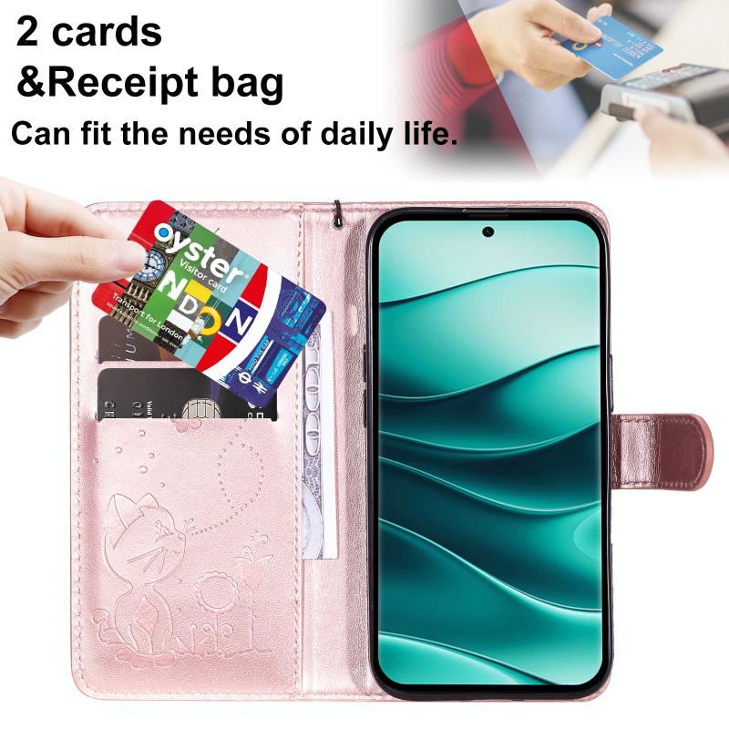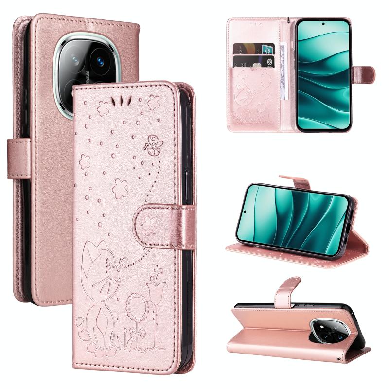 For Redmi Note 14 Pro / 14 Pro+ 5G Cat and Bee Embossed Flip Leather Phone Case(Rose Gold)