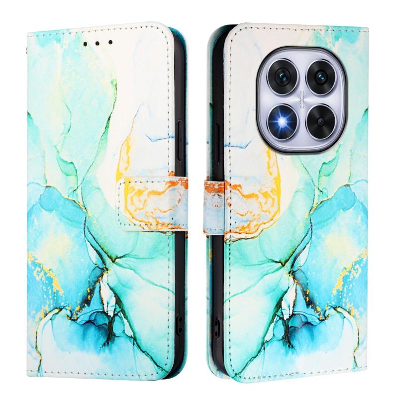 For Redmi Note 14 Pro / 14 Pro+ 5G Global PT003 Marble Pattern Flip Leather Phone Case(Green)