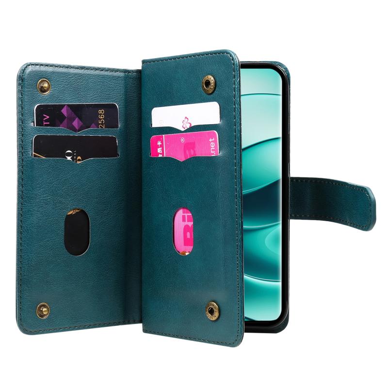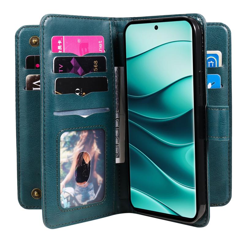 For Redmi Note 14 Pro / 14 Pro+ 5G Multi-Function Wallet 10 Card Slots Leather Phone Case(Dark Green)