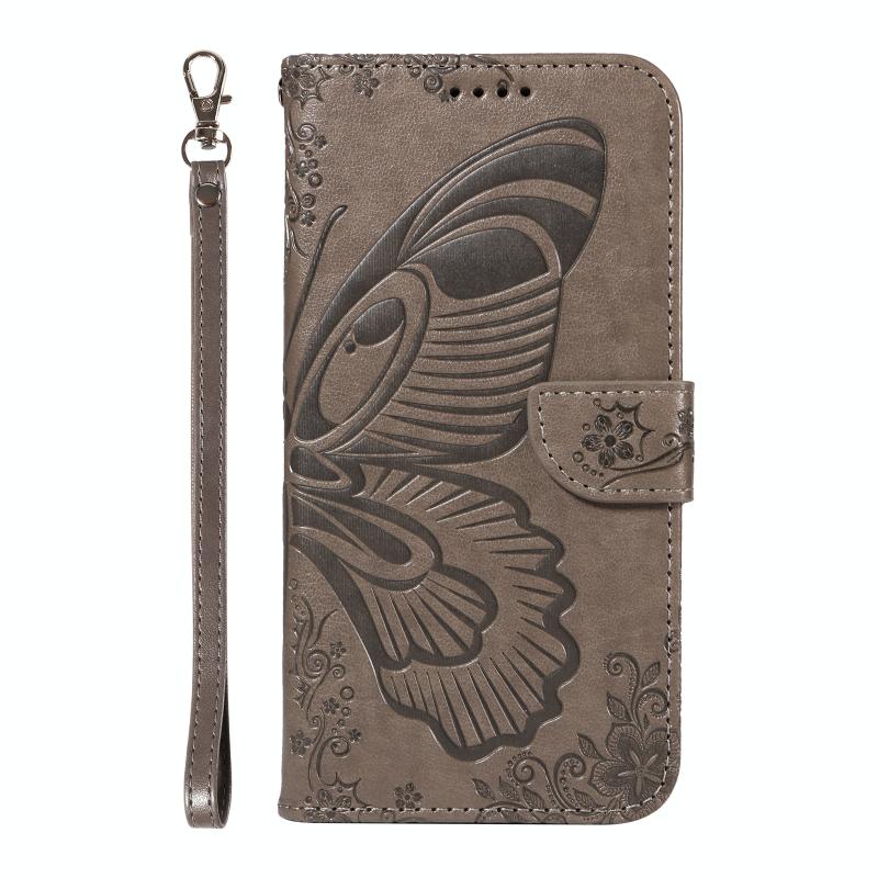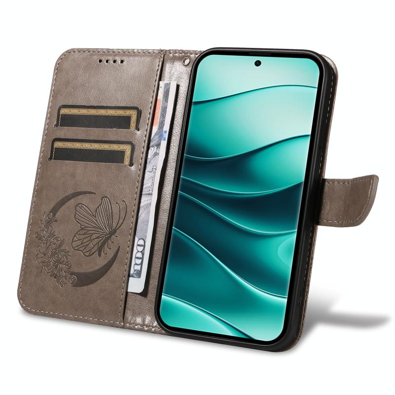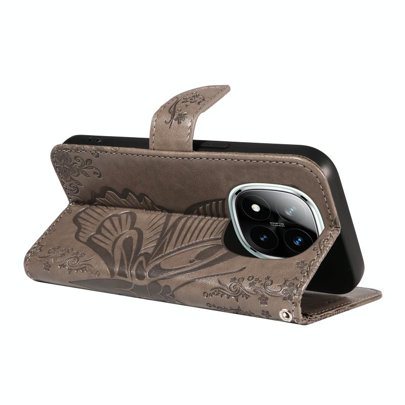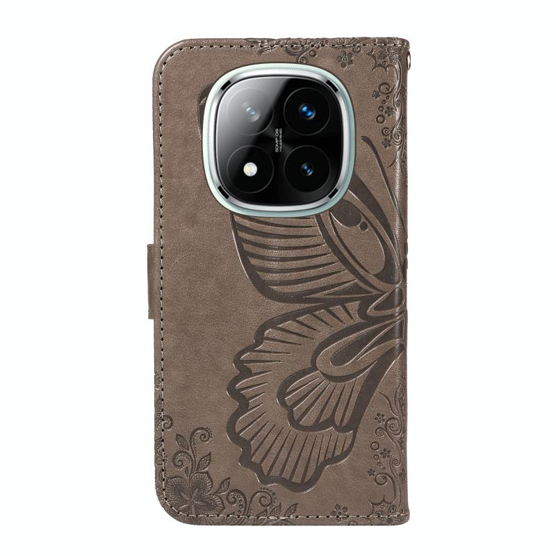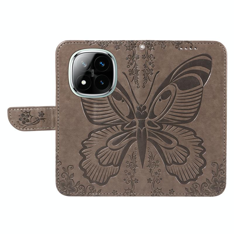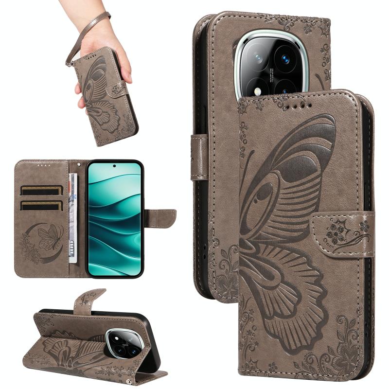 For Redmi Note 14 Pro / 14 Pro+ 5G Swallowtail Butterfly Embossed Leather Phone Case(Grey)