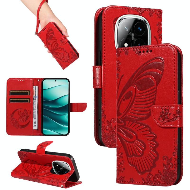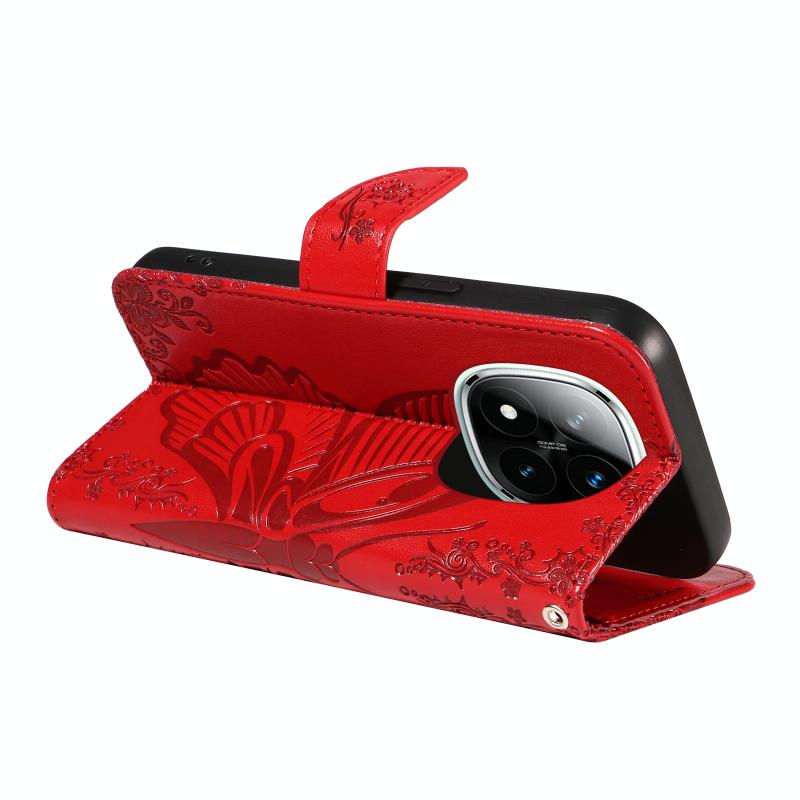 For Redmi Note 14 Pro / 14 Pro+ 5G Swallowtail Butterfly Embossed Leather Phone Case(Red)