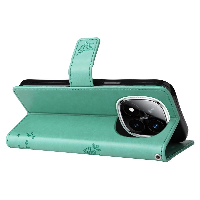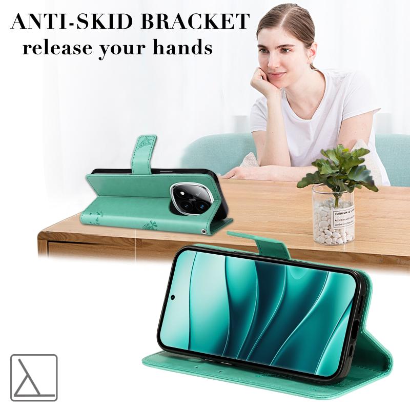 For Redmi Note 14 Pro / 14 Pro+ 5G Tree & Cat Embossed Pattern Flip Leather Phone Case(Green)
