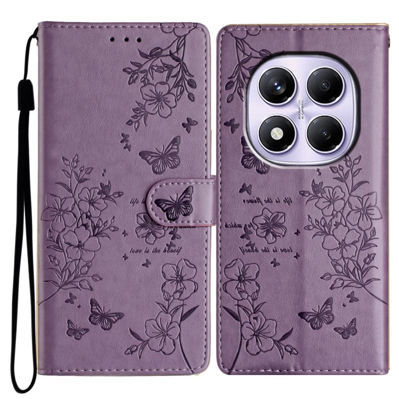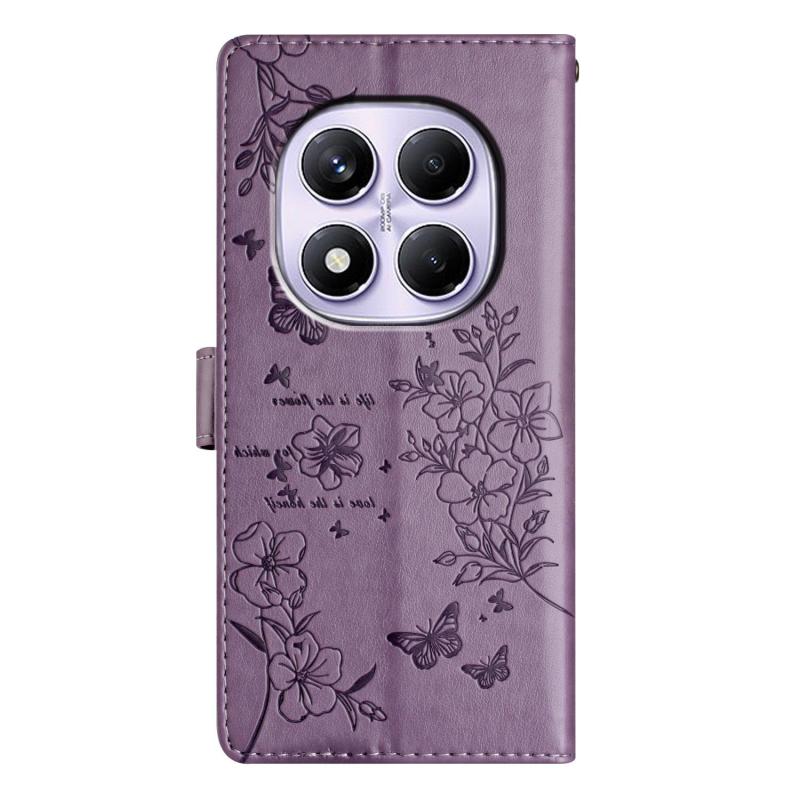 For Redmi Note 14 Pro 4G Butterflies and Flowers Leather Phone Case(Purple)