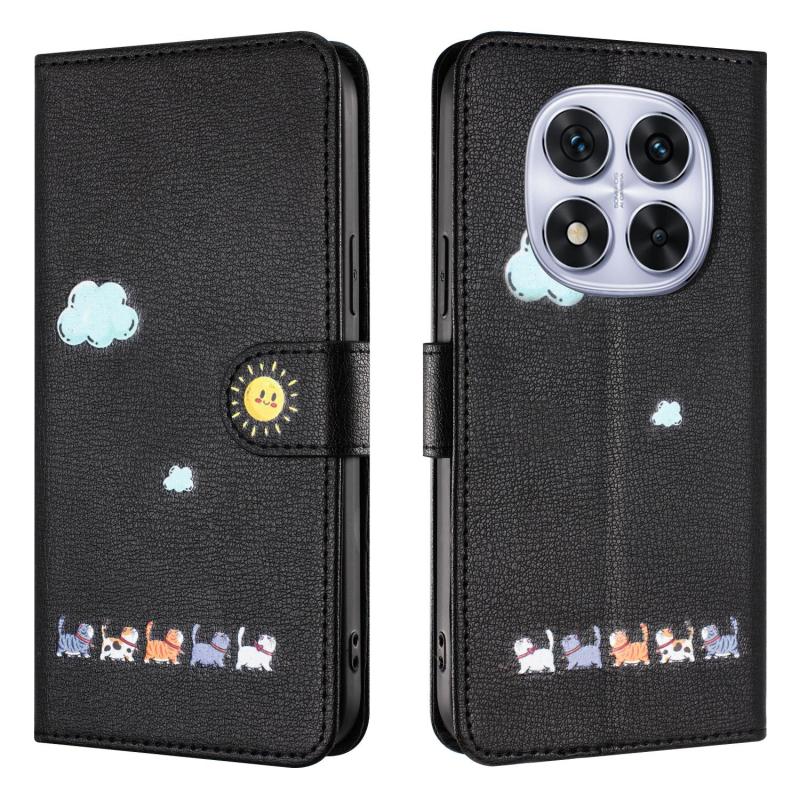 For Redmi Note 14 Pro 4G Cartoon Cats Leather Phone Case(Black)