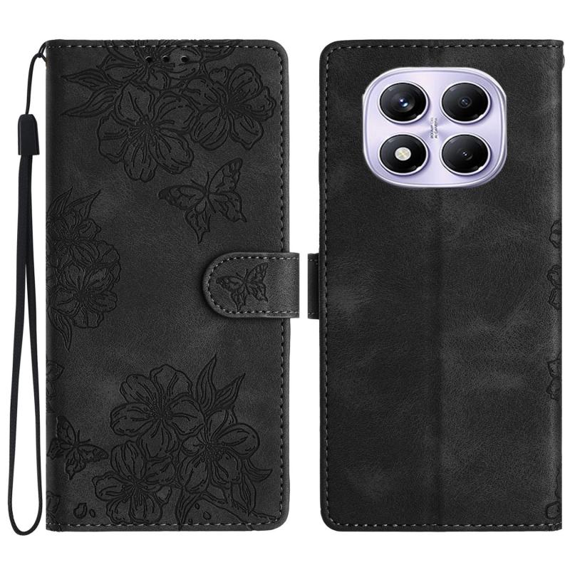 For Redmi Note 14 Pro 4G Cherry Blossom Butterfly Skin Feel Embossed PU Phone Case(Black)