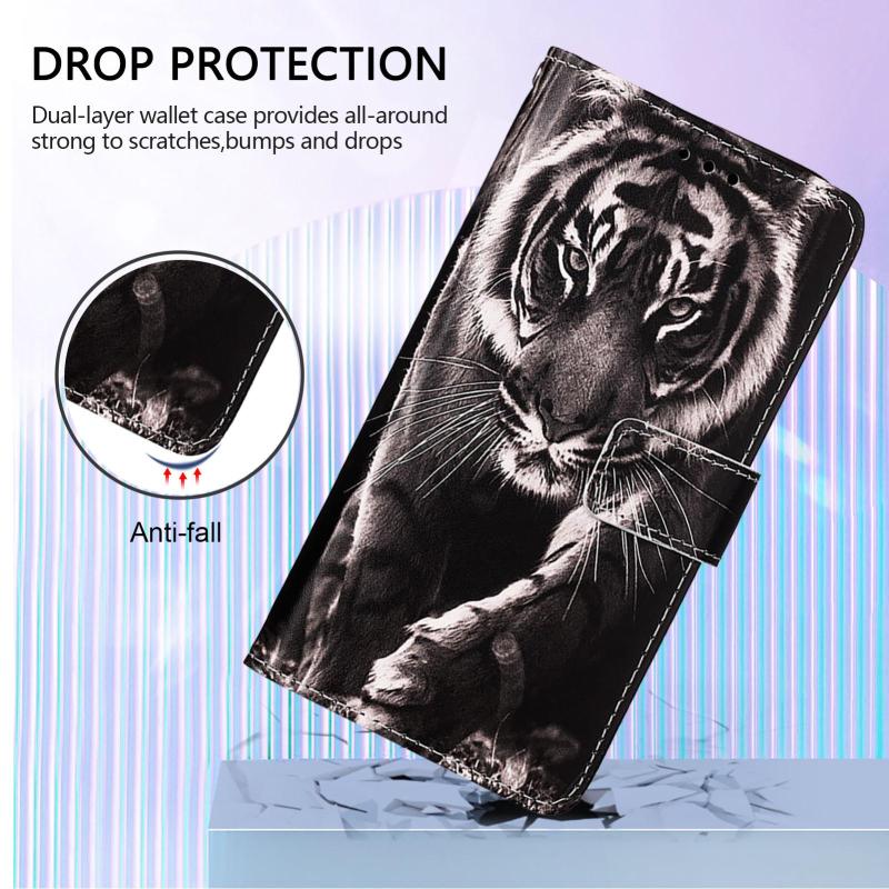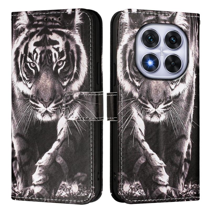 For Redmi Note 14 Pro 4G Colored Drawing Pattern Plain Weave Leather Phone Case(Black And White Tiger)