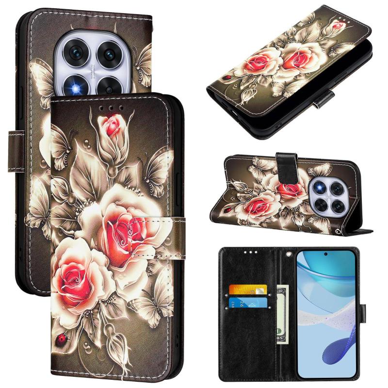 For Redmi Note 14 Pro 4G Colored Drawing Pattern Plain Weave Leather Phone Case(Roses On Black)