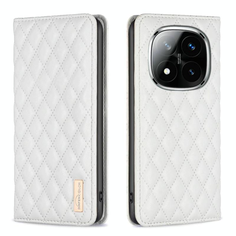For Redmi Note 14 Pro 4G Diamond Lattice Magnetic Leather Flip Phone Case(White)