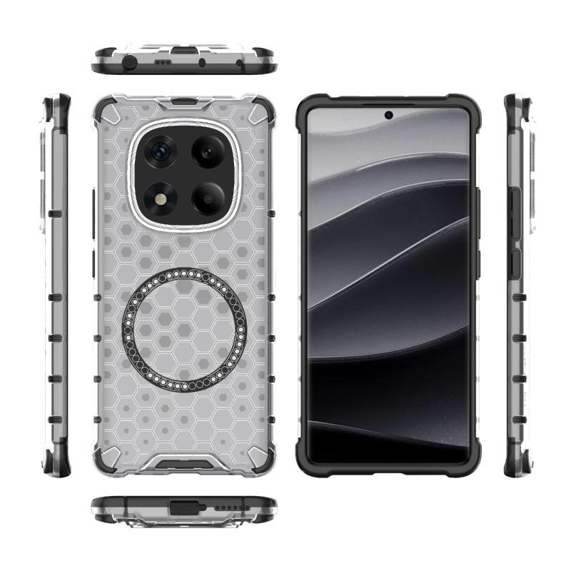 For Redmi Note 14 Pro 4G Global Honeycomb Magnetic Ring Shockproof Phone Case(White)