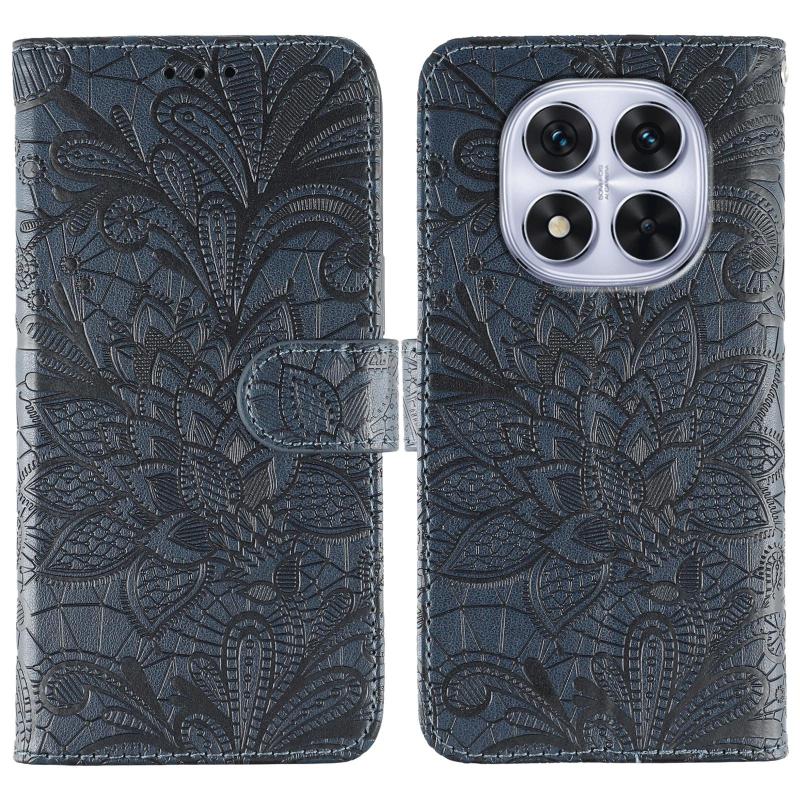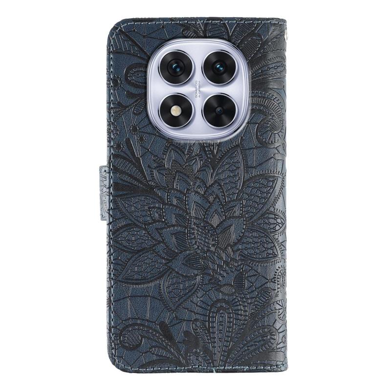 For Redmi Note 14 Pro 4G Global Lace Flower Embossing Flip Leather Phone Case(Dark Blue)
