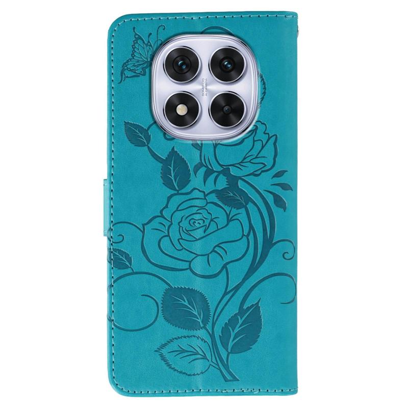 For Redmi Note 14 Pro 4G Global Rose Butterfly Embossed Leather Phone Case(Blue)