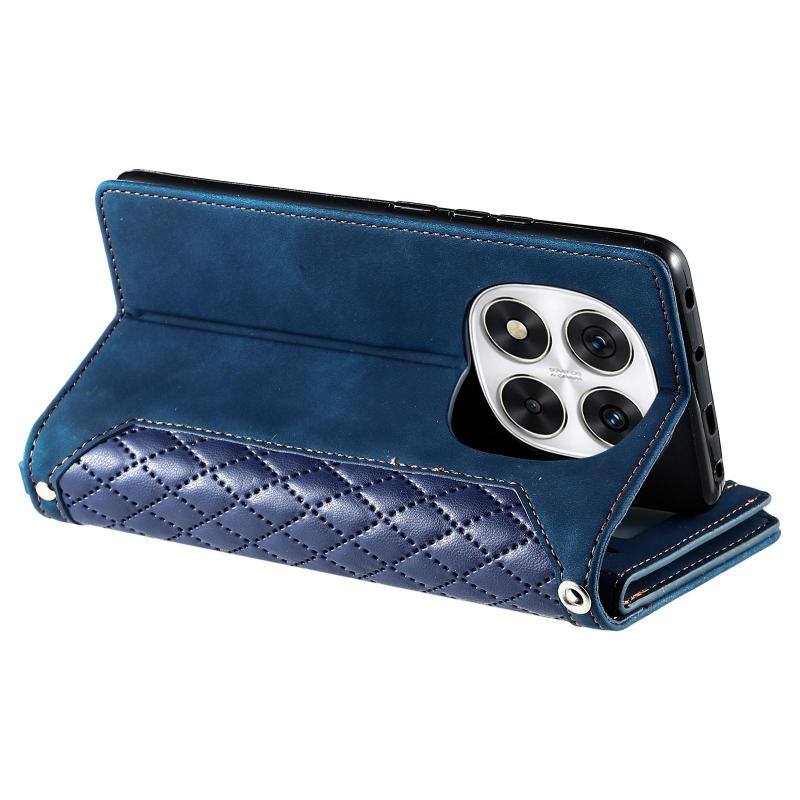 For Redmi Note 14 Pro 4G Grid Texture Zipper Leather Phone Case with Lanyard(Blue)