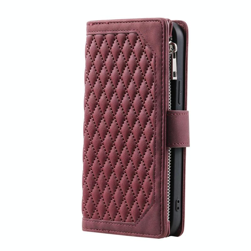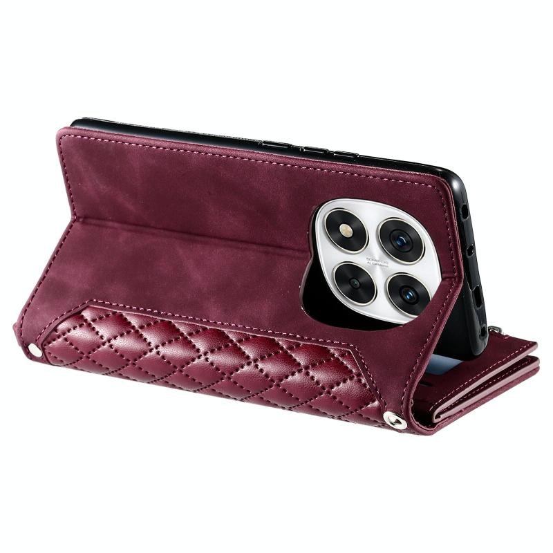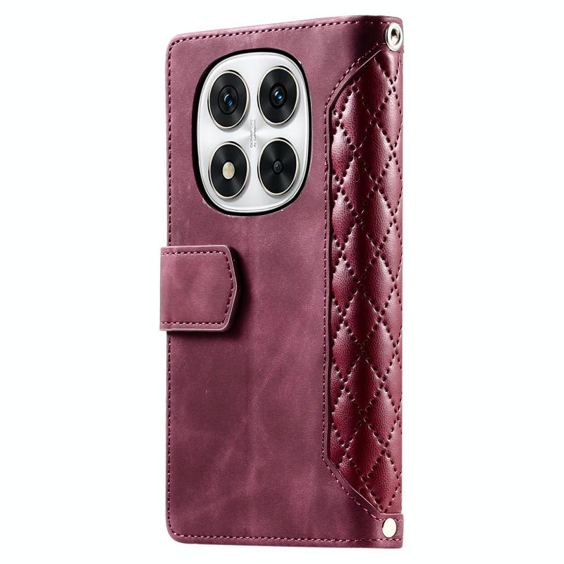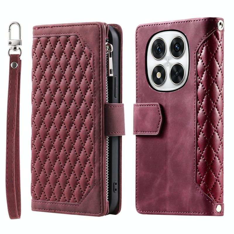 For Redmi Note 14 Pro 4G Grid Texture Zipper Leather Phone Case with Lanyard(Wine Red)