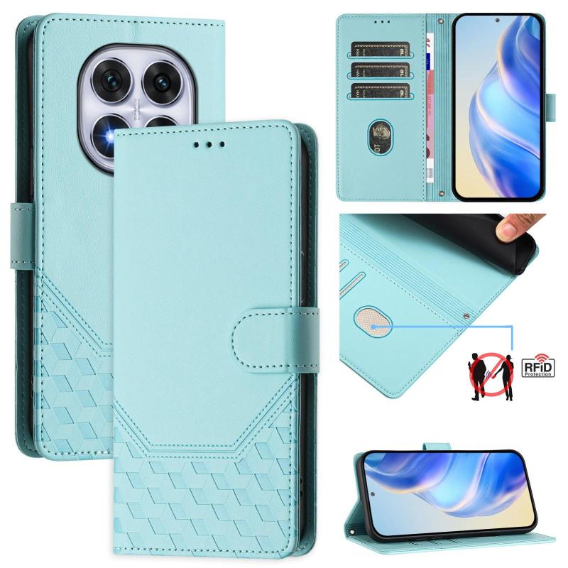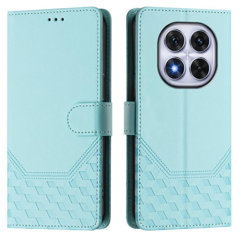 For Redmi Note 14 Pro 4G Honeycomb Embossing RFID Leather Phone Case(Mint Green)