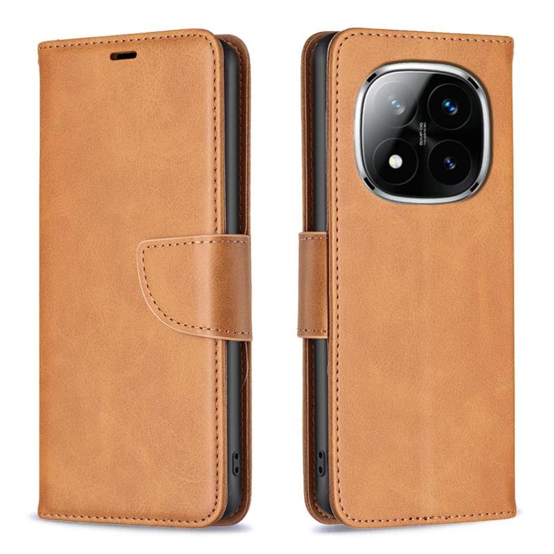 For Redmi Note 14 Pro 4G Lambskin Texture Pure Color Flip Leather Phone Case(Yellow)