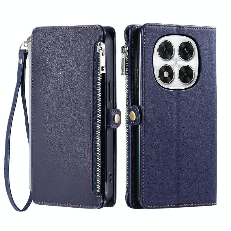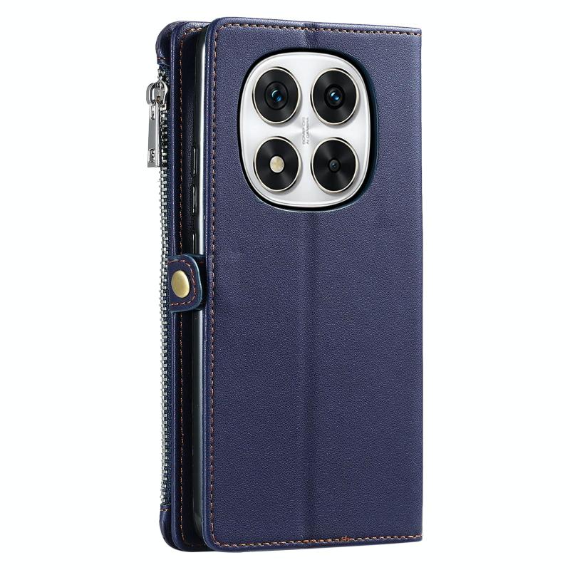 For Redmi Note 14 Pro 4G Leather Stitching Multi-card Slot Zipper Phone Case(Blue)