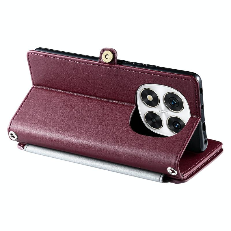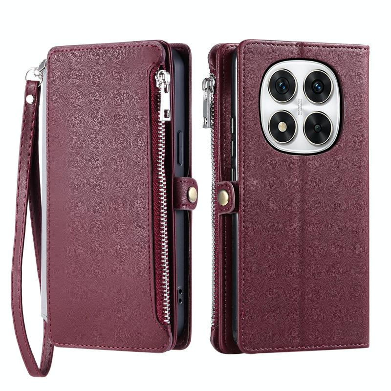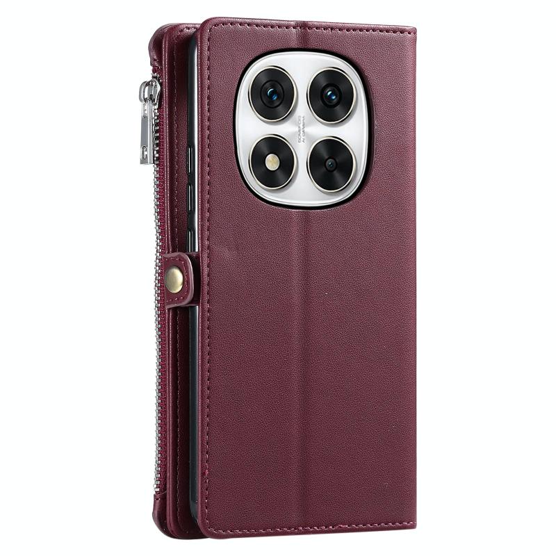 For Redmi Note 14 Pro 4G Leather Stitching Multi-card Slot Zipper Phone Case(Wine Red)