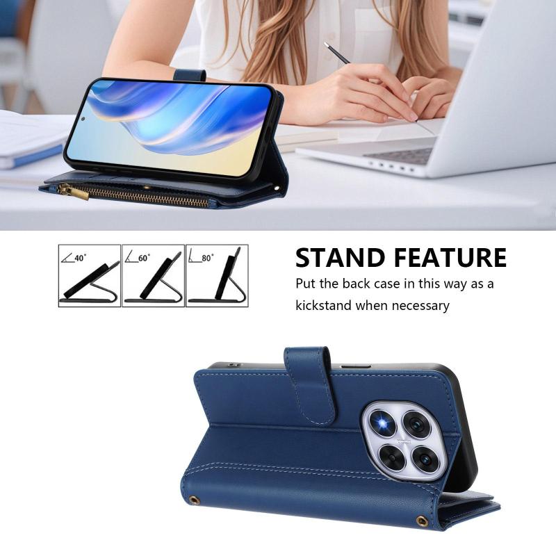 For Redmi Note 14 Pro 4G Magnetic Closure 9 Card Slots Zipper Leather Case with Hand Strap(Dark Blue)