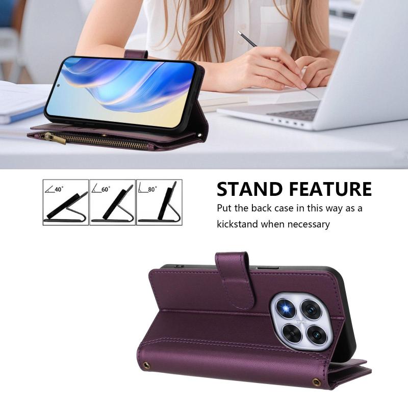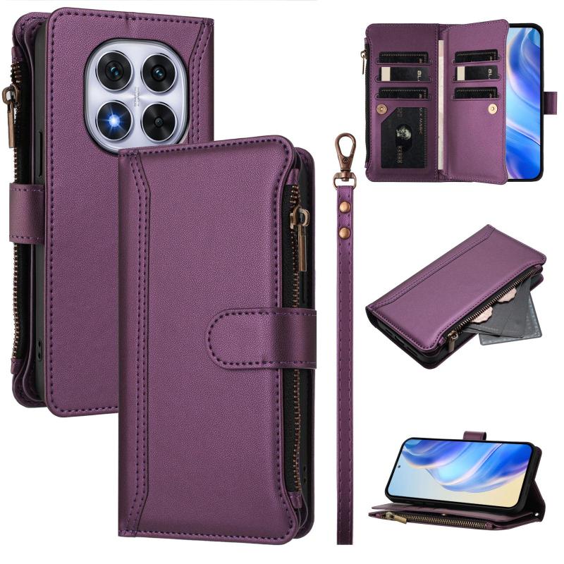 For Redmi Note 14 Pro 4G Magnetic Closure 9 Card Slots Zipper Leather Case with Hand Strap(Purple)