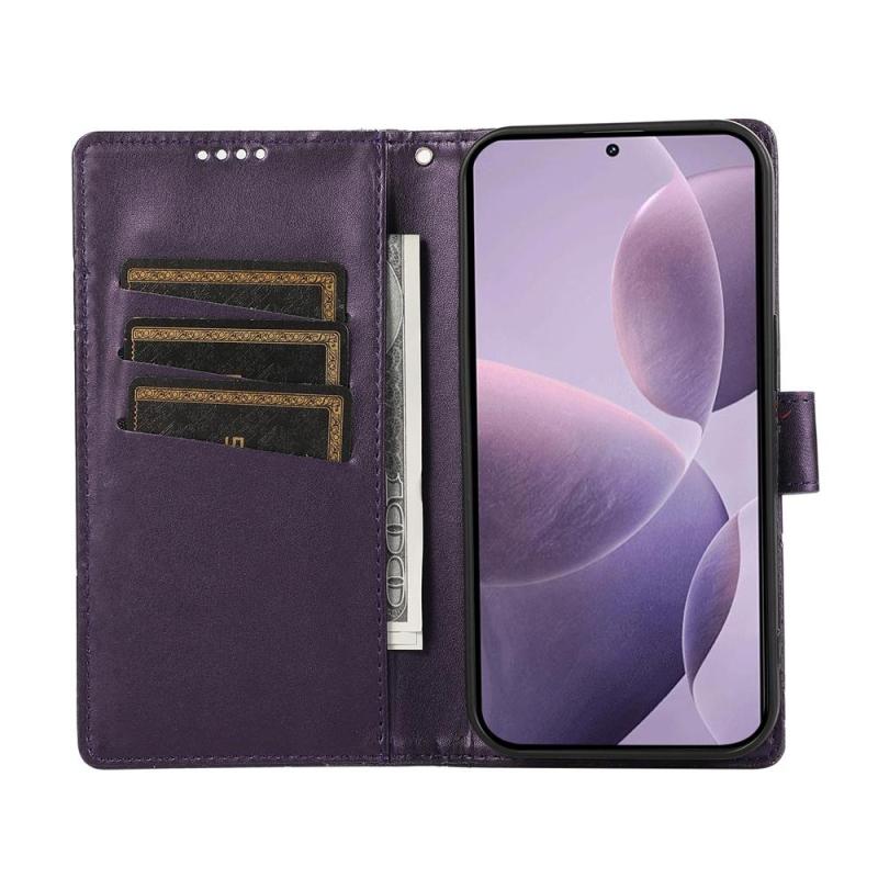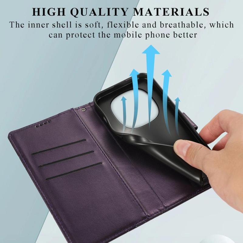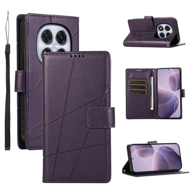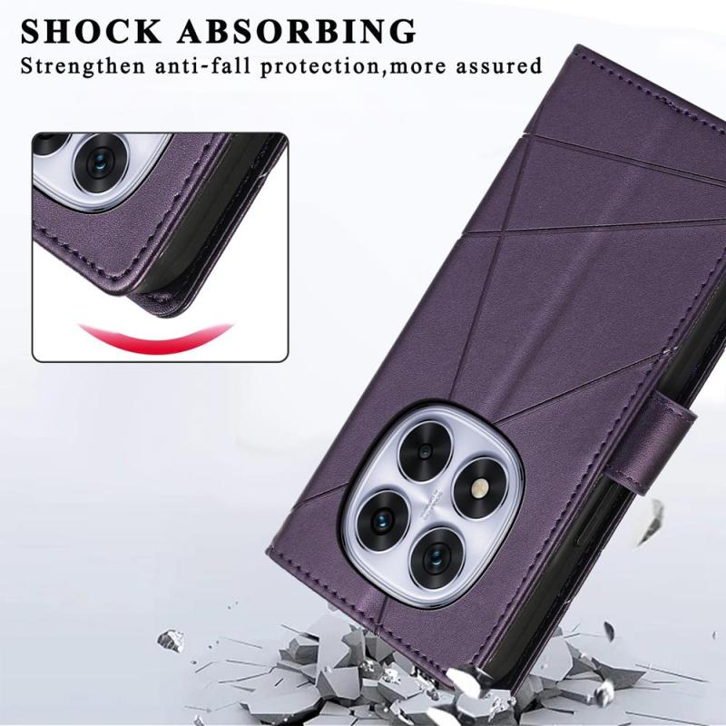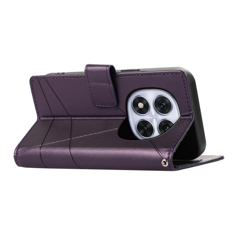 For Redmi Note 14 Pro 4G PU Genuine Leather Texture Embossed Line Phone Case(Purple)