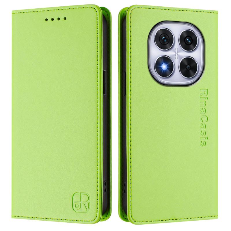 For Redmi Note 14 Pro 4G RC01 Dual-Folded Magnetic Suction RFID Leather Phone Case(Grass Green)