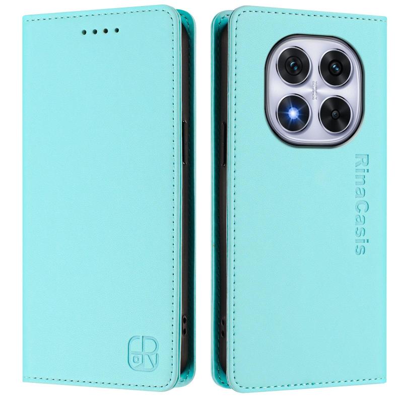 For Redmi Note 14 Pro 4G RC01 Dual-Folded Magnetic Suction RFID Leather Phone Case(Mint Green)