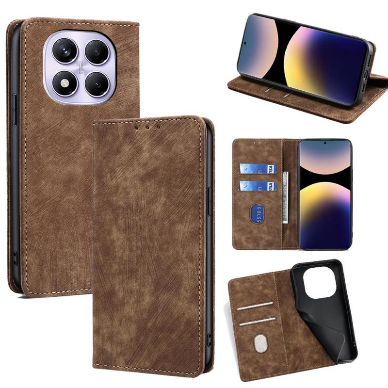 For Redmi Note 14 Pro 4G RFID Anti-theft Brush Magnetic Leather Phone Case(Brown)