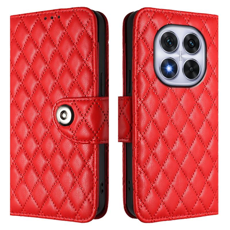 For Redmi Note 14 Pro 4G Rhombic Texture Flip Leather Phone Case with Lanyard(Red)