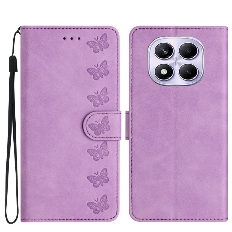 For Redmi Note 14 Pro 4G Seven Butterflies Embossed Leather Phone Case(Purple)