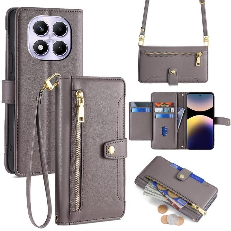 For Redmi Note 14 Pro 4G Sheep Texture Cross-body Zipper Wallet Leather Phone Case(Grey)