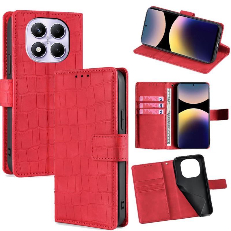 For Redmi Note 14 Pro 4G Skin Feel Crocodile Magnetic Clasp Leather Phone Case(Red)