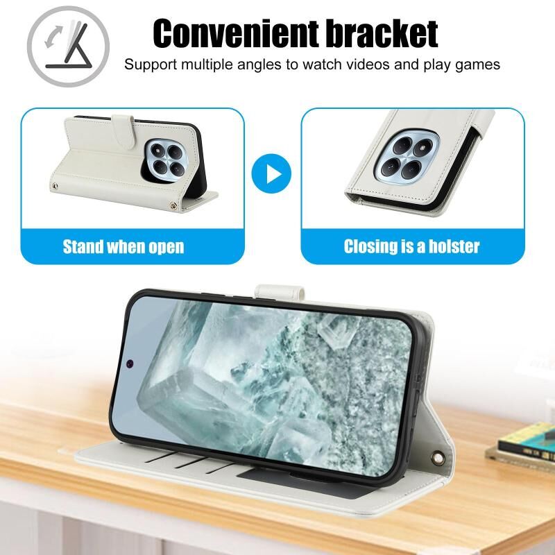 For Redmi Note 14 Pro 4G Skin Feel Pure Color Card Slots Leather Phone Case with Dual Lanyard(White)