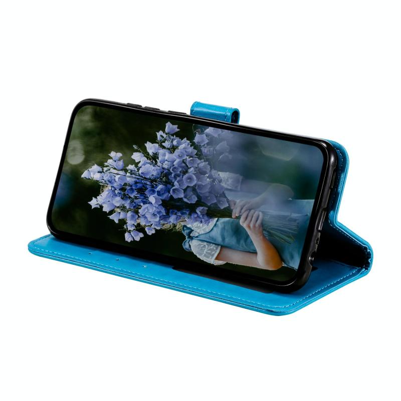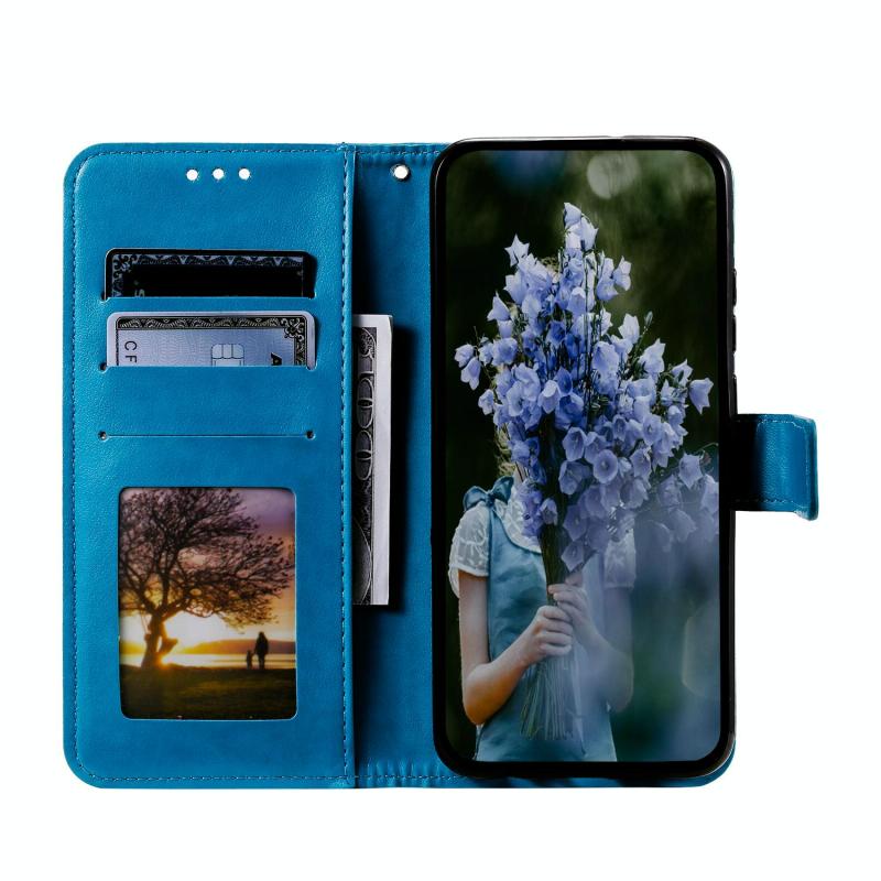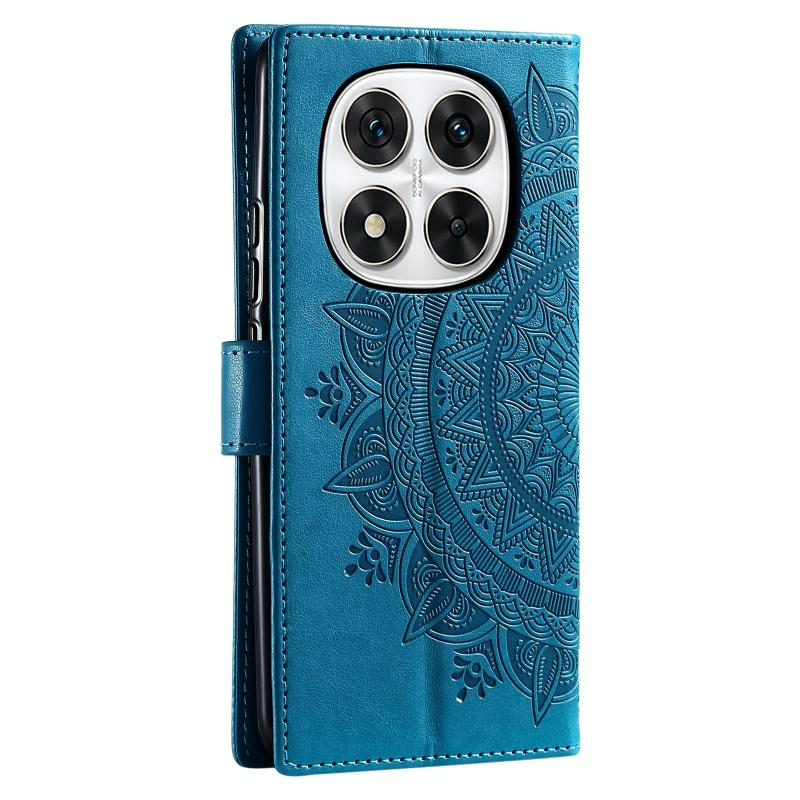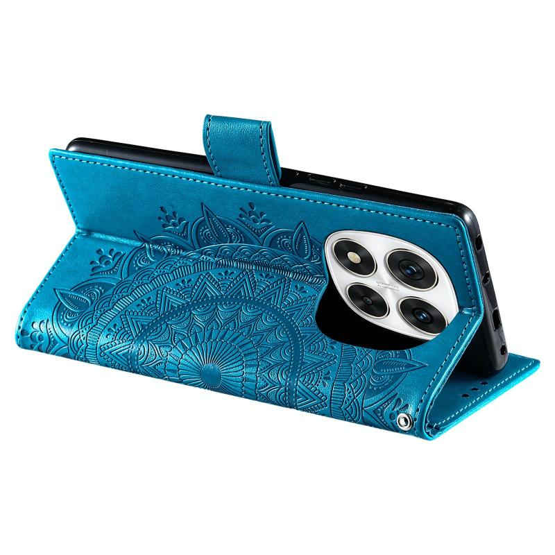 For Redmi Note 14 Pro 4G Totem Flower Embossed Leather Phone Case with Lanyard(Blue)