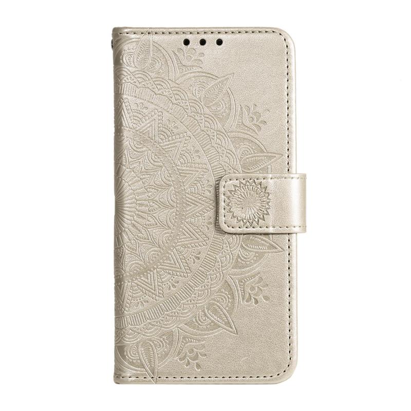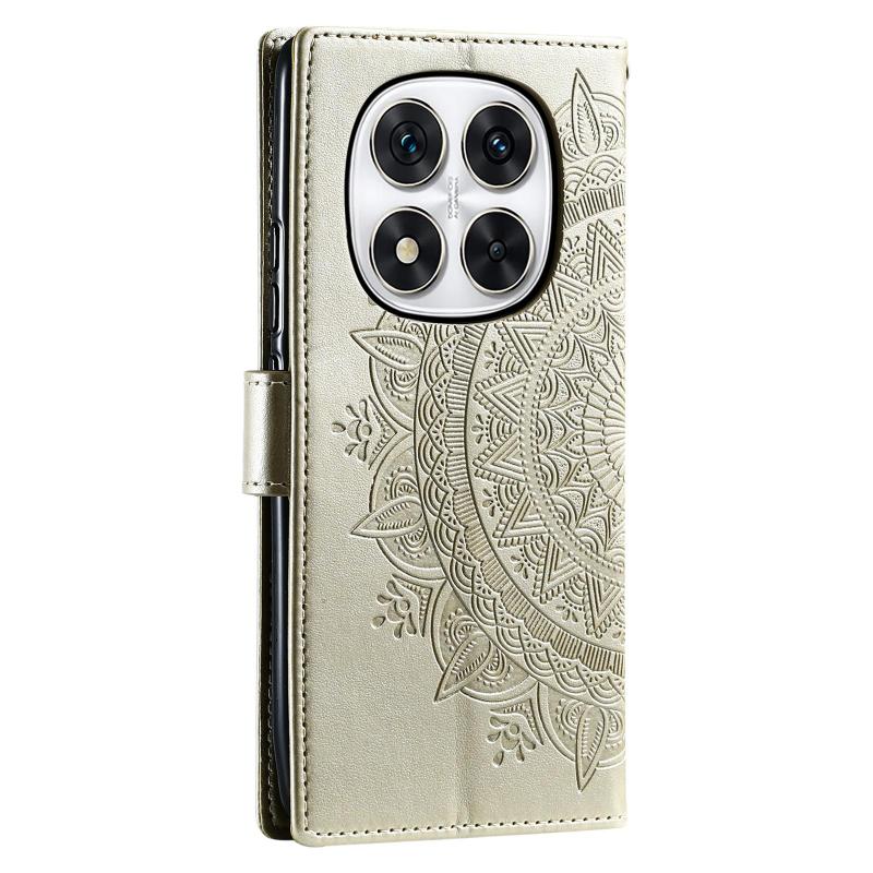 For Redmi Note 14 Pro 4G Totem Flower Embossed Leather Phone Case with Lanyard(Gold)