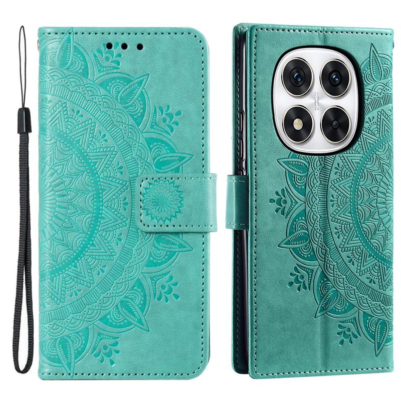 For Redmi Note 14 Pro 4G Totem Flower Embossed Leather Phone Case with Lanyard(Green)